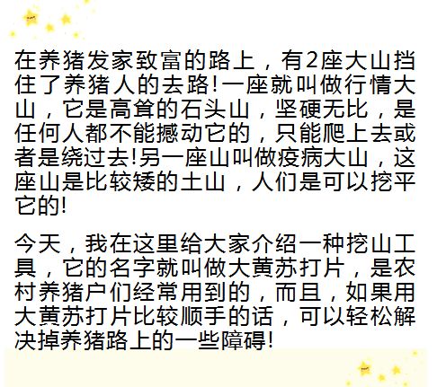 以上就是大黄苏打片在养猪过程中的妙用,希望对养猪的朋友们有一些帮助!