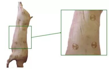 激光灼刻检疫标识是利用激光在猪肉表皮上灼刻动物检疫合格、信息编码及企业名称等内容。以清晰有效、不可擦除的标识信息为载体,为猪肉产品的安全可查询、可追溯提供理想的监管手段和信息链基础。与传统的人工滚筒针刺式胴体检疫验讫印章相比,激光灼刻胴体检疫验讫印章具有识别度高、难于伪造和卫生安全的特点,该项技术已先后在多地推广使用。