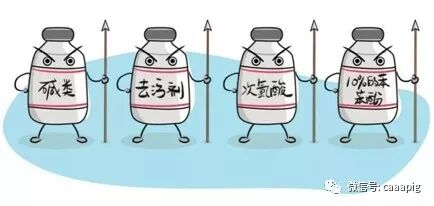 (4)带猪消毒。使用2-5%碘制剂、1:100-1:300的复合酚、1:200-1:300的戊二醛进行带猪消毒。