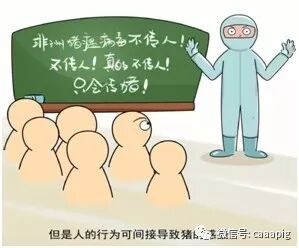非洲猪瘟不是人畜共患病,不会感染人,对人没有危害,也不会感染除猪(包括家猪和野猪)以外的其他动物。自发现非洲猪瘟近一百年来,全球范围内没有出现人感染非洲猪瘟的情况。