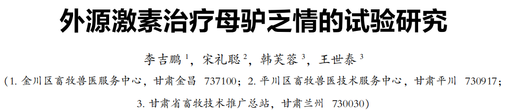 近年来随着人们对驴产品需求的激增,驴产业成为了具有广阔发展前景的特色养殖产业。但是,目前我国驴的存栏量低,生产及管理水平低、繁殖技术落后、繁殖效率低下等的因素阻碍了我国驴产业的快速发展。驴是季节性多次发情动物,在自然交配状态下,发情从3、4 月份开始,4—6 月份为发情旺季,7—8 月份酷暑期减弱,深秋至春初进入乏情期,空怀期较长,自然繁殖效率在30%~60%[1]。研究从利用外源激素治疗母驴乏情入手,诱导发情,缩短产驹时间间隔,提高优良母驴的繁殖力,提高繁殖效率,探索解决繁殖效率低下的方法。该试验综合考虑经济成本和效果成效,摸索出利用性腺激素释放激素、人绒毛膜促性腺激素、前列腺素、促黄体素释放激素等4 种外源激素,以不同组合治疗乏情母驴的最佳可行性方案,以此提高受胎率和妊娠率,提升养殖效益。