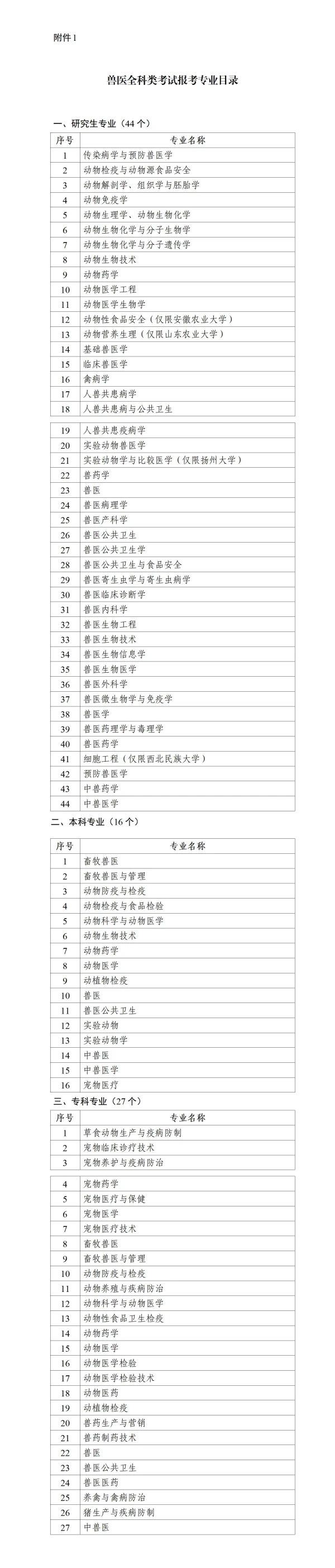 (一)具有大学专科以上学历的人员或全日制高校在校生,专业符合兽医全科类考试报考专业目录(附件1)的,可以报名参加兽医全科类考试。