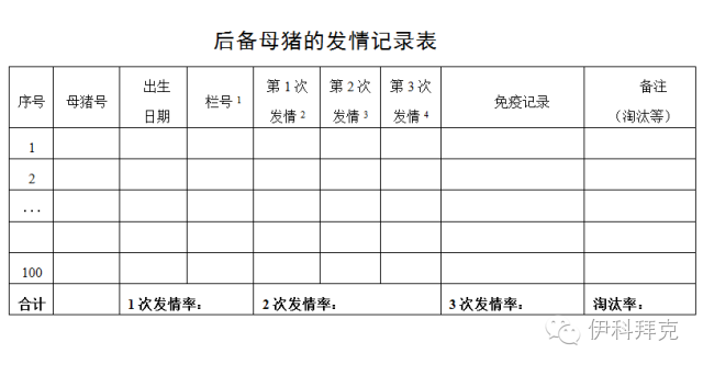 这种情况下,建立起“后备母猪的发情记录”,并严格的监督执行,将会起到统领起各种因素和相关措施执行的作用,有效的监督并保证后备母猪在正确的饲养管理条件下逐步达到配种的生理和体重要求。