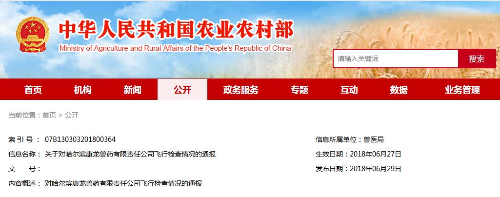 检查单位 | 中国兽医药品监察所、哈尔滨市畜牧兽医局 | ||