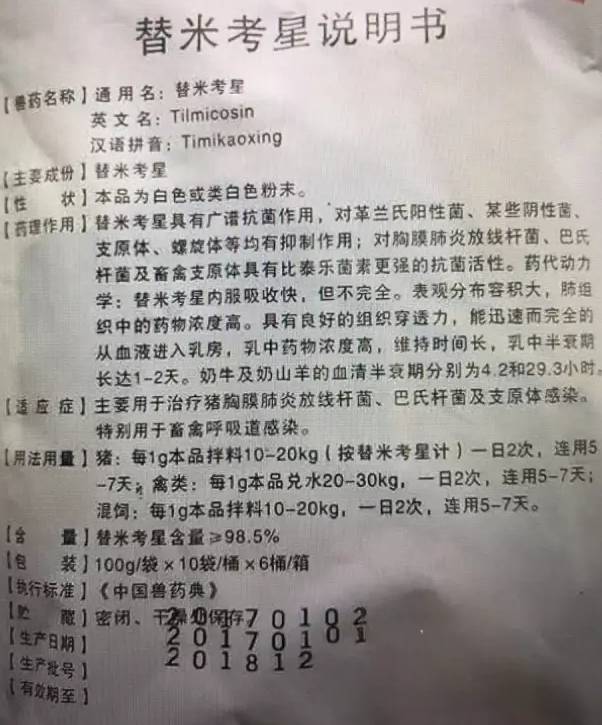 一个月后,对王老板进行了电话回访。王老板很高兴地告诉我们,自从使用了推荐的方案后,他的猪场不仅没死一头猪,反而比以前更加稳定,更加好喂了。同时,他寄给湖北省兽药工程研究中心检测的阿莫西林和替米考星结果出来了,检测结果为标注含量为70%的阿莫西林,实际含量为2.5%;标注含量为98.5%的替米考星实际含量为未检出。