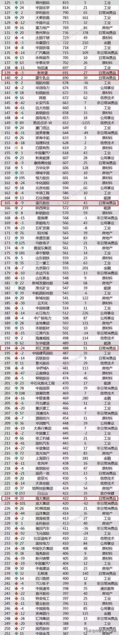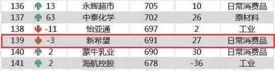 其中,新希望以691亿元的营收位列第139位,较2017年下降3位;温氏股份以572亿元的营收位列第165位,较2017年下降9位;双汇发展以488亿元的营收位列第194位,较2017年下降24为。