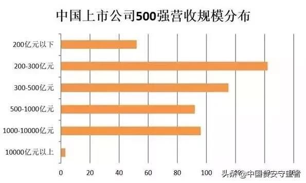 同时,有96家上市公司营收在1000-10000亿元,92家上市公司的营收在500-1000亿元,115家上市公司营收在300-500亿元之间,142家公司营收在200-300亿元,营收在200亿元以下的公司则有52家。