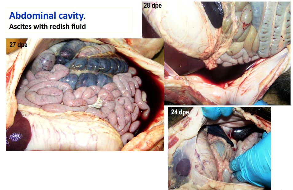肝,黄色积液、堵塞、肝肿大、胆囊浆膜表面出血