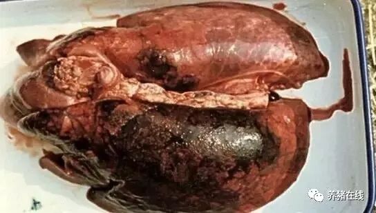 各龄猪均可感染,但以2~5月龄、体重在30~60千克的猪多发。病的发生有明显的季节性,多在4~5月份和9~11月份。饲养环境突变、饲养密度过大、猪舍通风不良、气候骤变及长途运输等都可诱发。初发病猪群的发病率和病死率均较高,经过一段时间后,渐趋缓和,发病率和病死率明显减少。本病的危害程度常随饲养条件的改善而减少。急性病猪体温可升高至42。C以上,精神沉郁,不食,呼吸急促.极为困难,常站立或犬坐而不愿卧地,张口伸舌,自口鼻流出泡沫样分泌物。耳、鼻及四肢皮肤常呈蓝紫色。如不及时治疗,常于一两天内窒息而死。若病初症状比较缓和,能耐过4天以上者,症状逐步减轻,常能自行康复或转为慢性。此时体温不高,呈间歇性咳嗽,生长迟缓,若混合感染巴氏杆菌或支原体时,则病程恶化,病死率明显增加。 病变多见于肺部,多为两侧性,常发生于心叶、尖叶及膈叶的一部分。病变部呈暗红色,界限清晰,硬度增加,切面似肝,间质充满血色胶冻样液体。肺炎灶表面被覆有纤维素,胸腔内有黄红色混浊的液体。病程较长的病例,肺炎灶常硬结或坏死,并与胸壁、心脏等粘连,胸膜显著增厚,表现明显的胸膜炎。通常根据上述特点,特别是急性病例,可以做出初步诊断。