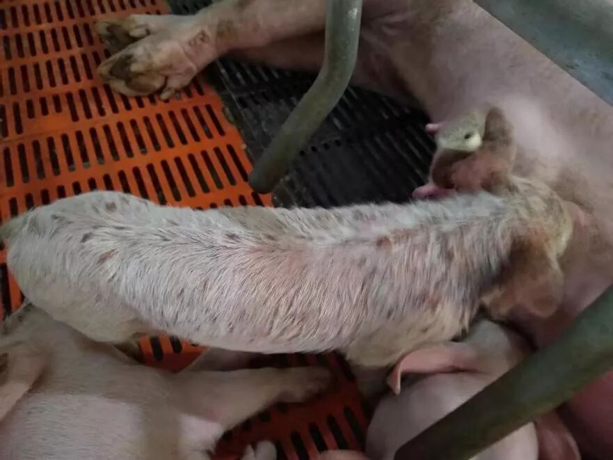 猪葡萄球菌其实是猪场的常在菌,也是成年猪皮肤上的正常菌群。病猪的感染多是因为由于外界因素等造成表皮的创伤、裂口而导致。所以产房饲养人员应当加强仔猪的护理,一是预防仔猪相互之间的争斗;二是防止养猪环境中的不良因素引起发病,如要保证围栏表面不粗糙,消除带有尖锐的物品;三是防止划伤皮肤等。同时也要加强对产房母猪的饲养管理,体表使用诗满净定期驱虫,母猪进入产房前应先清洗、消毒,然后放进清洁、消毒过或熏蒸过的产仔栏。对母猪和仔猪的局部损伤应立即进行处治,有助于防止该病的进一步发展。