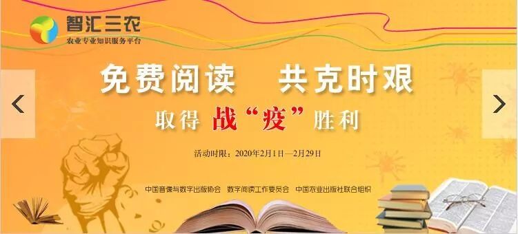 为积极响应新型冠状病毒感染肺炎疫情防控工作,为用户提供优质和免费的知识内容,让广大“三农”从业者能足不出户地学习知识,中国农业出版社决定从2月1日起将“智汇三农”农业专业知识服务平台(www.pwsannong.com)中所有内容免费向全国用户开放,开放时间至2020年2月29日。