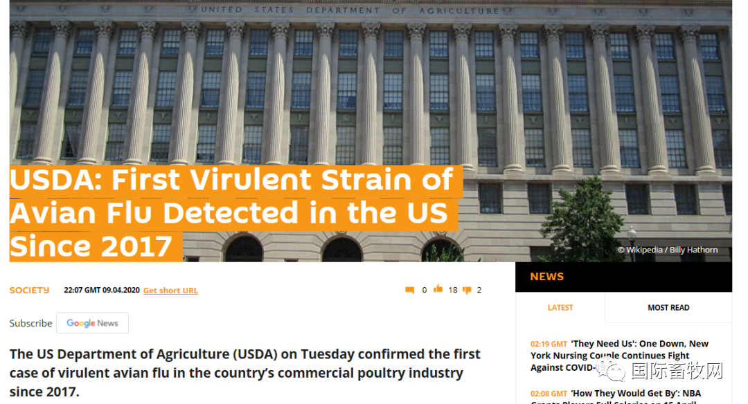 4月9日,美国农业部(USDA)发布消息称,已证实南卡罗来纳州切斯特菲尔德县的一个火鸡群感染高致病性H7N3禽流感(HPAI)。这是自2017年以来,美国商业家禽中首次确诊高致病性禽流感病例。美国农业部称,这株HPAI毒株似乎是从该地区家禽中一株低致病性毒株突变而来。目前尚未发现美国人感染此类病毒,没有立即的公共卫生健康顾虑。2014年和2015年,美国曾爆发史无前例的禽流感,造成大约5000万只禽类死亡,其中大部分为爱荷华州的蛋鸡。美国农业部表示,目前还没有发现人类感染H7N3禽流感病毒的病例,也没有直接的公共卫生问题。但提醒人们正确处理家禽和鸡蛋,烹调至内部温度达165华氏度,以杀死细菌和病毒。美国克莱姆森兽医诊断中心已完成对样本的测试工作。病毒分离正在进行中。据悉,州政府对受影响的建筑进行了隔离,其中的禽类也被隔离,不会进入食物系统。美国当局监测发现,在8个商业火鸡养殖场发现H7N3病毒的低致病性禽流感病毒(LPAI)。受禽流感疫情影响的是北卡罗来纳州的五个农场,南卡罗来纳州的疫情发生在切斯特菲尔德县。据美国农业部向OIE提交的官方报告称,在近18.9万只禽类中,没有一只出现禽流感症状,联邦和州动物卫生机构正在继续加强对该病毒的监测以及流行病学调查。3月16日美国农业部向OIE报告称,北卡罗来纳州北卡罗莱纳的三个火鸡养殖场再次发生了这种LPAI病毒的变体,共有90200只禽类疑似病例。自3月10日总疫情爆发以来,直接受影响的禽类数量超过了27.9万只。