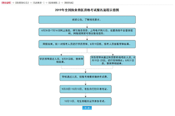 全国执业兽医资格考试采取网上报名、现场确认的方式进行。网上报名期间,报考人员登录中国兽医网(www.cadc.net.cn)全国执业兽医资格考试网上信息平台,按照网上报名要求和流程进行报名。