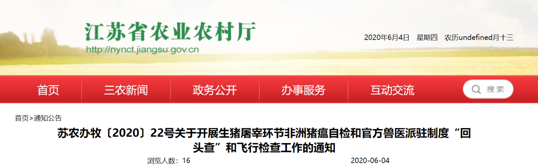 各设区市农业农村局: 为贯彻落实全国非洲猪瘟联防联控机制视频会议精神,强化屠宰环节风险管控,根据农业农村部畜牧兽医局《关于开展生猪屠宰环节非洲猪瘟自检和官方兽医派驻制度“回头查”和飞行检查工作的通知》(农牧便函〔2020〕350号)要求,我厅组织制定了生猪屠宰环节非洲猪瘟自检和官方兽医派驻制度(以下简称“两项制度”)“回头查”和飞行检查工作方案,现印发给你们,请认真贯彻执行。 附件:1.2020年两项制度“回头查”工作方案 2.2020年生猪屠宰环节飞行检查工作方案 江苏省农业农村厅办公室 2020年6月1日 2020年两项制度“回头查”工作方案 为有效防控非洲猪瘟疫情,加强屠宰环节风险管控,夯实两项制度工作成效,制定本工作方案。 一、“回头查”范围 全省126家生猪定点屠宰企业。 二、“回头查”内容 (一)非洲猪瘟自检制度落实情况。主要包括:屠宰企业是否按照国务院“批批检、全覆盖原则,全面开展非洲猪瘟检测”的要求开展非洲猪瘟检测;是否有符合非洲猪瘟病毒检测技术要求的实验室;是否配备经培训并通过考核的检测技术人员;是否建立抽样检测操作规程、检测样品统一编号;采用的检测试剂、方法是否符合规定,是否有仪器使用记录和试剂领用记录;是否建立留样管理制度、实验室消毒制度、留存样品冷冻保存1个月以上;是否建立完整的检测记录、检测结果经驻场官方兽医签字确认。 (二)官方兽医派驻制度落实情况。主要包括:所在地农业农村部门是否按国务院规定的标准对照2019年生猪屠宰量,足额向屠宰企业派驻官方兽医;是否存在官方兽医实际未到岗等弄虚作假的问题;官方兽医开展屠宰检疫及监督屠宰企业开展非洲猪瘟自检情况;官方兽医人员经费保障、工作条件保障、农业有毒有害保健津贴和畜牧兽医医疗卫生津贴政策落实等情况。 (三)屠宰企业资格条件情况。主要包括:屠宰企业生猪定点屠宰证书、动物防疫条件合格证、排污许可证、工商营业执照等相关资质信息是否一致;是否存在使用国家明令淘汰的桥式劈半锯、敞式生猪烫毛机等屠宰设施设备;是否按照规定建立并实施肉品品质检验制度等情况。 (四)安全生产责任落实情况。主要包括:屠宰企业是否按规定建立安全生产制度、管理制度、安全防范机制;是否在醒目位置和重点区域设置明显的警示标志和安全风险告知栏;是否对重点岗位、重点人员开展安全生产培训;从事锅炉、高压容器、液氨存储设备等特种设备操作的人员是否经过专门的安全生产培训并持证上岗;锅炉、高压容器、液氨存储罐等特种设备是否按规定申领使用许可证或部门登记;液氨储存量≥10吨的企业是否在当地应急管理部门备案登记;是否开展安全生产风险隐患自查自纠工作等情况。 三、组织方式和时间安排 (一)组织方式。“回头查”工作由市、县按照“分级实施、全覆盖”的原则组织开展。县级组织开展辖区内生猪屠宰企业自查,市级负责在县级自查基础上对全市生猪屠宰企业进行全面“回头查”,省厅将对各市问题突出的屠宰企业进行抽查(检查组安排见附表1)。 (二)时间安排。县级自查工作要于6月10日前完成,市级全面“回头查”要于6月10日-20日期间完成,省级将于6月10日-7月5日期间开展抽查。 四、有关要求 (一)各地要高度重视此次“回头查”工作,在落实两项制度百日行动的基础上,克服松懈心态、麻痹思想,对屠宰环节两项制度落实情况再督促、再检查,要做到所有屠宰企业全覆盖、不留盲区,严禁弄虚作假,切实强化屠宰环节风险管控。 (二)“回头查”工作中发现屠宰企业存在落实两项制度、安全生产责任不到位,资质弄虚作假等情况,要依法依规严肃处理。对发现违法线索的,要移交公安机关,依法追究刑事责任。 (三)请各地及时总结“回头查”工作开展情况并填写附表2,于6月22日前报我厅。 联 系 人:刘晓宇 联系电话:025-86263358 2020年生猪屠宰环节飞行检查工作方案 为强化屠宰环节非洲猪瘟风险管控,加强生猪屠宰环节非洲猪瘟监管,确保生猪屠宰环节非洲猪瘟防控措施、企业入场把关落实到位,根据农业农村部119号公告、《生猪屠宰厂(场)飞行检查办法》,制定本工作方案。 一、检查时间 2020年6月-12月,具体时间由省、各设区市农业农村部门统筹确定。对群众举报多及定期监测发现问题等屠宰企业,要及时安排飞行检查。 二、检查内容 (一)非洲猪瘟自检制度落实情况。主要检查生猪屠宰企业是否按照“头头采、批批检、全覆盖”的原则开展非洲猪瘟自检,是否配备经培训并通过考核的检测技术人员,是否采用PCR方法开展检测,使用检测试剂是否经中国动物疫病预防控制中心评审通过,记录、报告、样品留存是否规范;检测结果是否经驻场官方兽医签字确认,是否存在非洲猪瘟病毒核酸阳性以及处置等情况。 (二)生物安全措施落实情况。主要检查企业厂区、生产车间及冷库、病害生猪及其产品暂存和无害化处理场所、血液储存罐等是否定期清洗消毒;是否设置车辆清洗消毒区域,采用半高带坡度的清洗台,配备消毒设施设备,运输车辆是否在进厂、卸猪后清洗消毒;清洗消毒相关记录是否规范完整等情况。 (三)屠宰企业入场把关情况。主要检查屠宰企业是否开展生猪入场查验登记工作;入场生猪是否持有有效动物检疫合格证明且证物相符;外省生猪是否经过