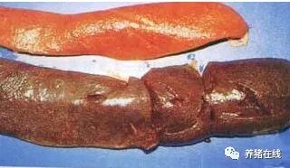 但附红体太多,白细胞数量仍然供不应求,淋巴结极度肿大后终于精疲力竭而变为胶样浸润(淋巴结外围一层胶冻样物质),此时,血流中白细胞只减不增。机体的免疫力实质是白细胞的活力,白细胞越活跃,机体的抗病力就越强;而体温与机体得免疫力成正比,体温每升高1℃,机体免疫力提高5~6倍;相反,体温每下降1℃,机体免疫力就会下降30%。附红体侵入机体后,耗尽了血流中的白细胞,又耗尽脾脏、淋巴结等储备库里的白细胞以后,机体抵抗力几乎丧失,体温随之偏低或下降。发病后期阶段,患猪各组织器官已不同程度衰竭,机体抵抗力严重下降,极易继发其他疾病,所以,治疗宜以防止继发和缓解症状为主。用药首选增强免疫力的药物(如扶正解毒散等)和繁殖继发感染的药物(如林可大观或替米考星等);发病猪可选用血虫净、吖啶黄等肌注,这类药物毒性较强,只能用于病理后期阶段,若用于病理的早期或中期阶段,有可能造成患猪很快全身黑紫、找有水的地方卧,甚至死亡。任何疾病的病理后期治疗要讲究增强免疫 + 对因治疗 + 对症治疗,以增强免疫为重。