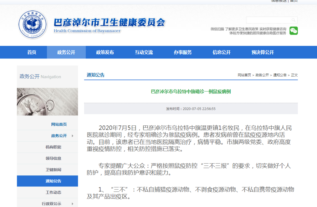 近日,内蒙古巴彦淖尔市确诊1例腺鼠疫病例,随后该市发布鼠疫防控Ⅲ级预警。鼠疫通过什么传播?有何临床症状?我们该如何预防?据内蒙古巴彦淖尔市卫健委消息,7月4日,该市乌拉特中旗人民医院报告了1例疑似腺鼠疫病例,为乌拉特中旗温更镇1名牧民。5日,经专家组确诊为腺鼠疫病例。患者发病前曾在鼠疫疫源地内活动。目前,该患者已在当地医院隔离治疗,病情平稳。巴彦淖尔市自2020年7月5日起进入预警期,预警时间持续到2020年底。国家卫健委发布的2019年全国法定传染病疫情数据显示,2019年全国共报告报告鼠疫发病5例,死亡1人。