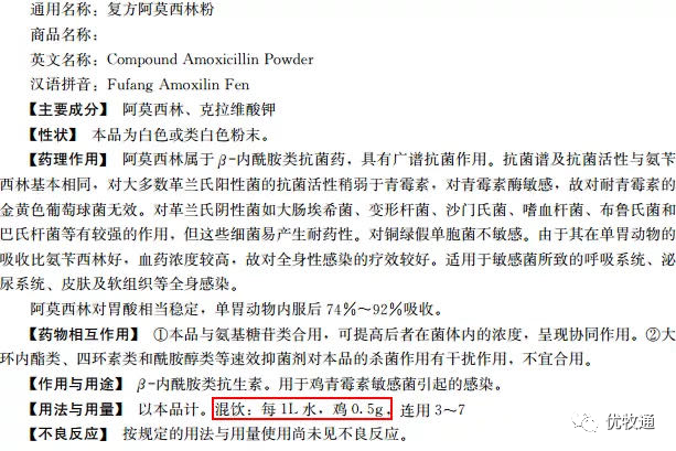 也就是说,治疗同样的细菌性疾病,你需要使用120.0g的10%阿莫西林可溶性粉,而且还不见得会有效,所以大家临床实际使用的时候,大多都加量使用,但尽管是这样做了,效果仍然不好;而使用10%的复方阿莫西林粉,毫无疑问是非常有效的,这是大家所公认的。
