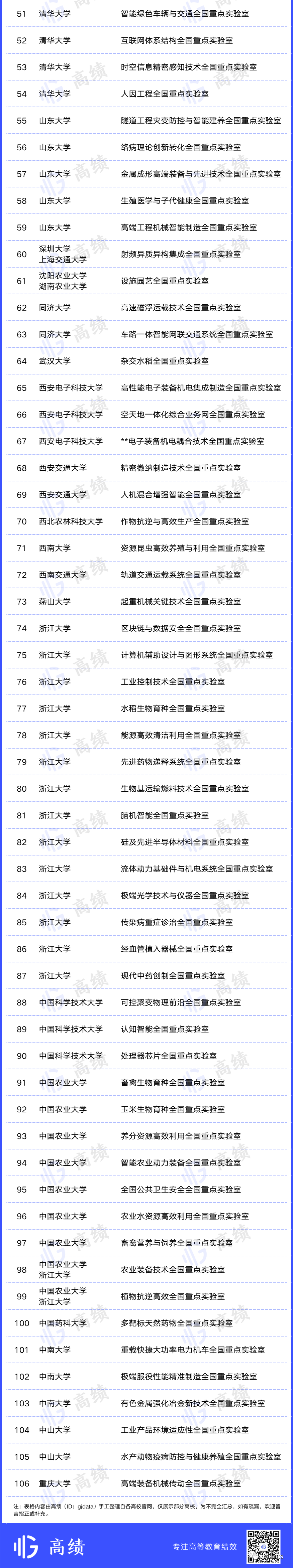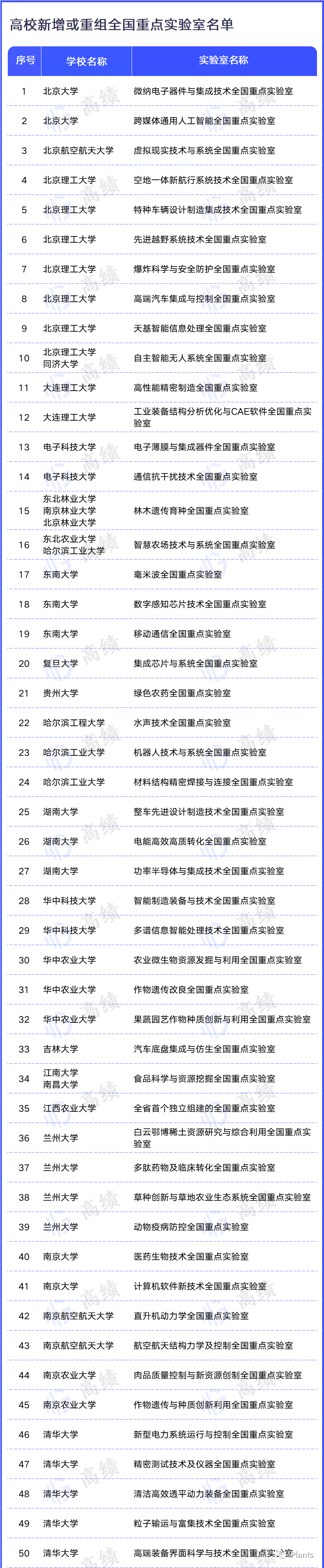 为了抓住机遇,顺应时势,各大高校都重组“全国重点实验室”提上了日程,布局规划的脚步不断加快,多所高校近期公布了所获批的全国重点实验室名单,其中中国农大有9个全国重点实验室,具体为:畜禽生物育种全国重点实验室、玉米生物育种全国重点实验室、养分资源高效利用全国重点实验室、智能农业动力装备全国重点实验室、全国公共卫生安全全国重点实验室、农业水资源高效利用全国重点实验室、畜禽营养与饲养全国重点实验室、农业装备技术全国重点实验室(与浙江大学一起)和植物抗逆高效全国重点实验室(与浙江大学一起)等9个全国重点实验室。